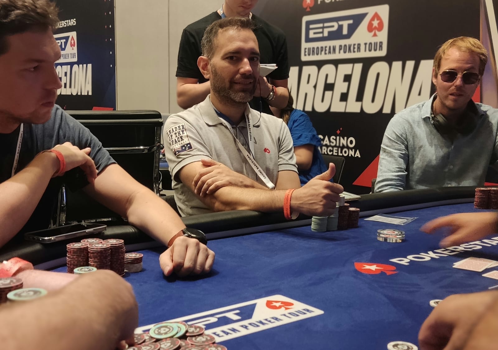 Ian Bradley abría la mano a 1,3 millones de puntos con ciegas en 300k/600k y Jorge Diego se movía all-in desde la ciega pequeña empujando 6,3 millones con As7c.