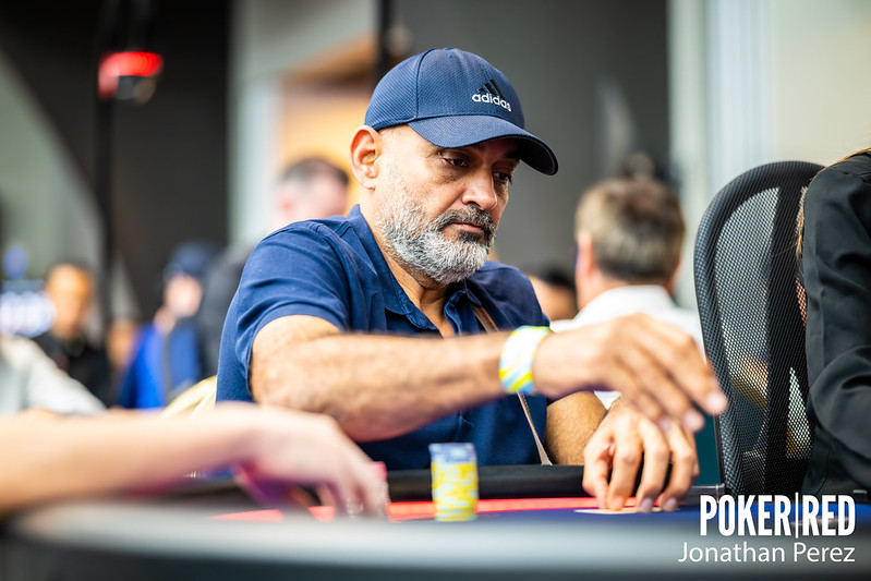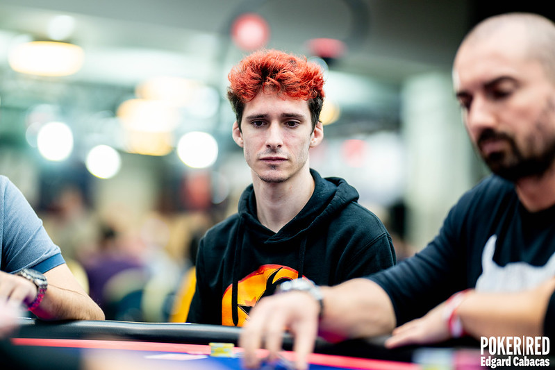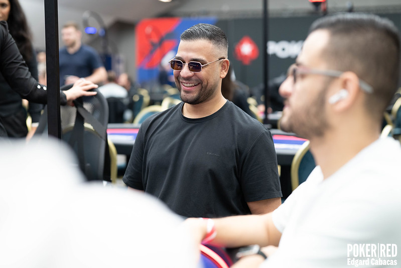 Muy cerca es turno de Gerard Rubiralta en guerra de ciegas, que desde SB apuesta 1.600 puntos en un board  8dKh5dQd3c. Le paga la BB y el catalán enseña  Qh3h. Muckea el rival y recoge plástico.