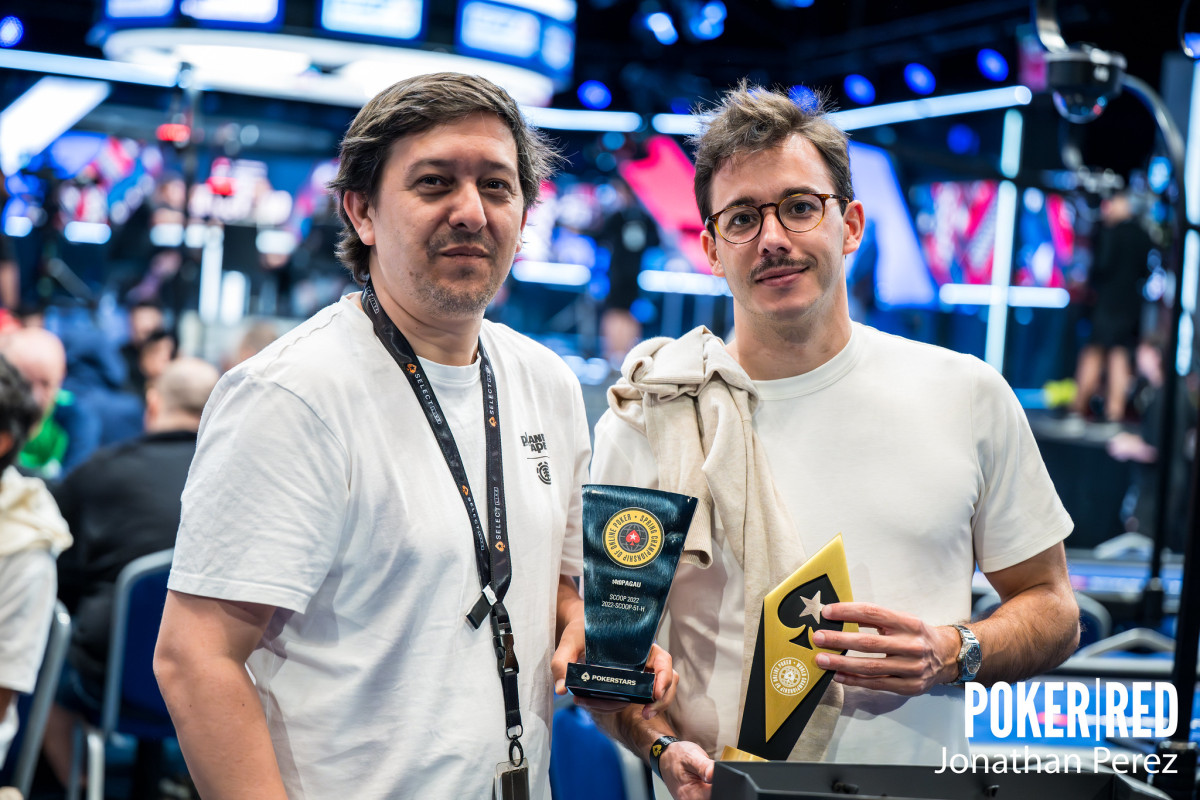 Lo que si vimos es como Adrián Delgado "MrGhalys" hacía entrega al esteponero de los trofeos de SCOOP y WCOOP que ganó y han esperado a entregárselos en persona en esta primera parada del European Poker Tour.