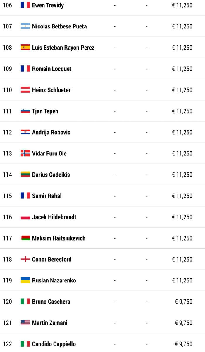 Se trata de la de Luis Esteban Rayón, que a finalizado en la posición 108, pero por lo menos ha cogido otro saltito de premios y se ha llevado 11.250 €.