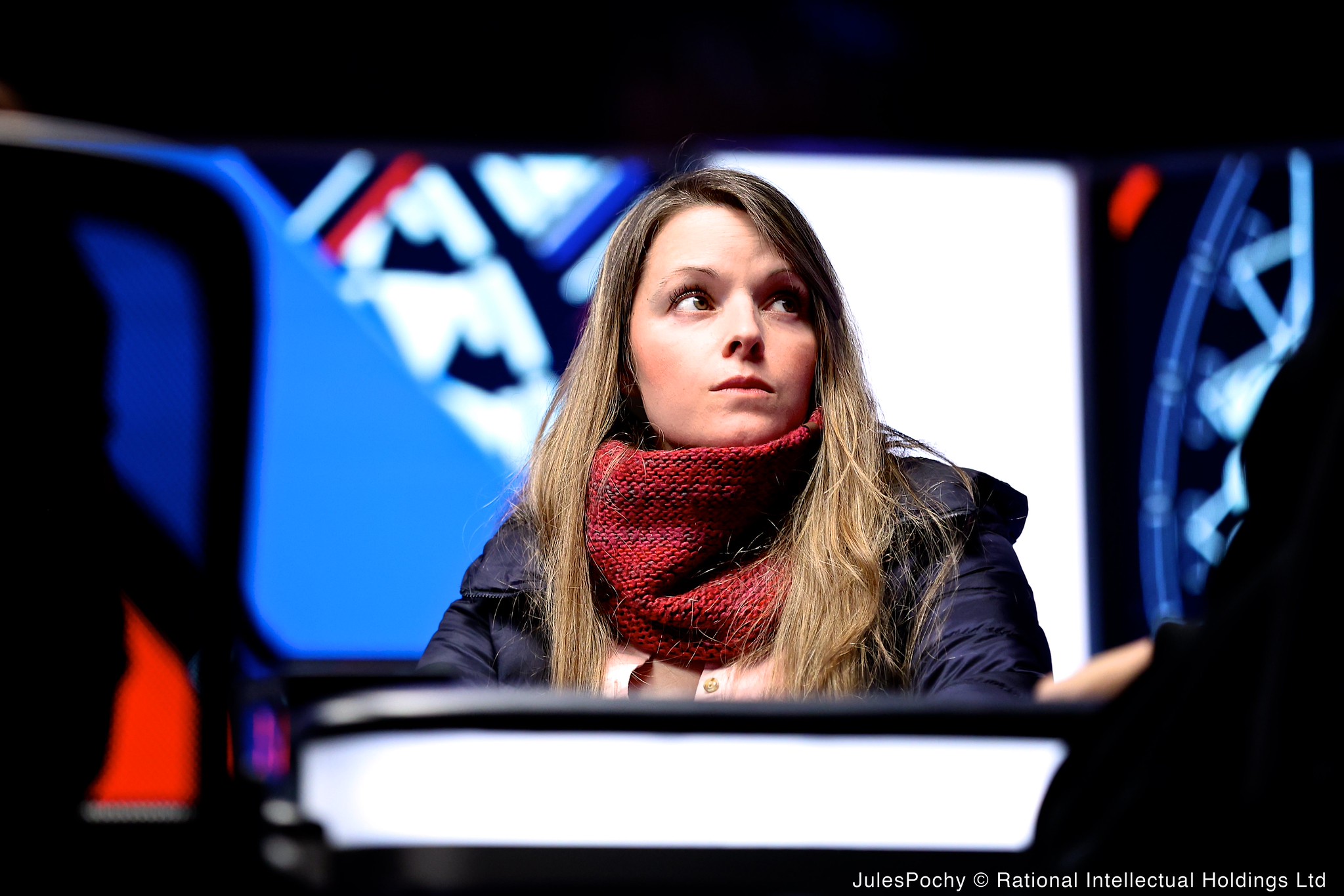 La argentina sigue acumulando puntos en su stack y en la última mano abrió la acción a 50.000 desde UTG, recibió el 3-bet a 140.000 de Vitezslav Cech desde hijack y pagó para ver un flop Jc6s5d.