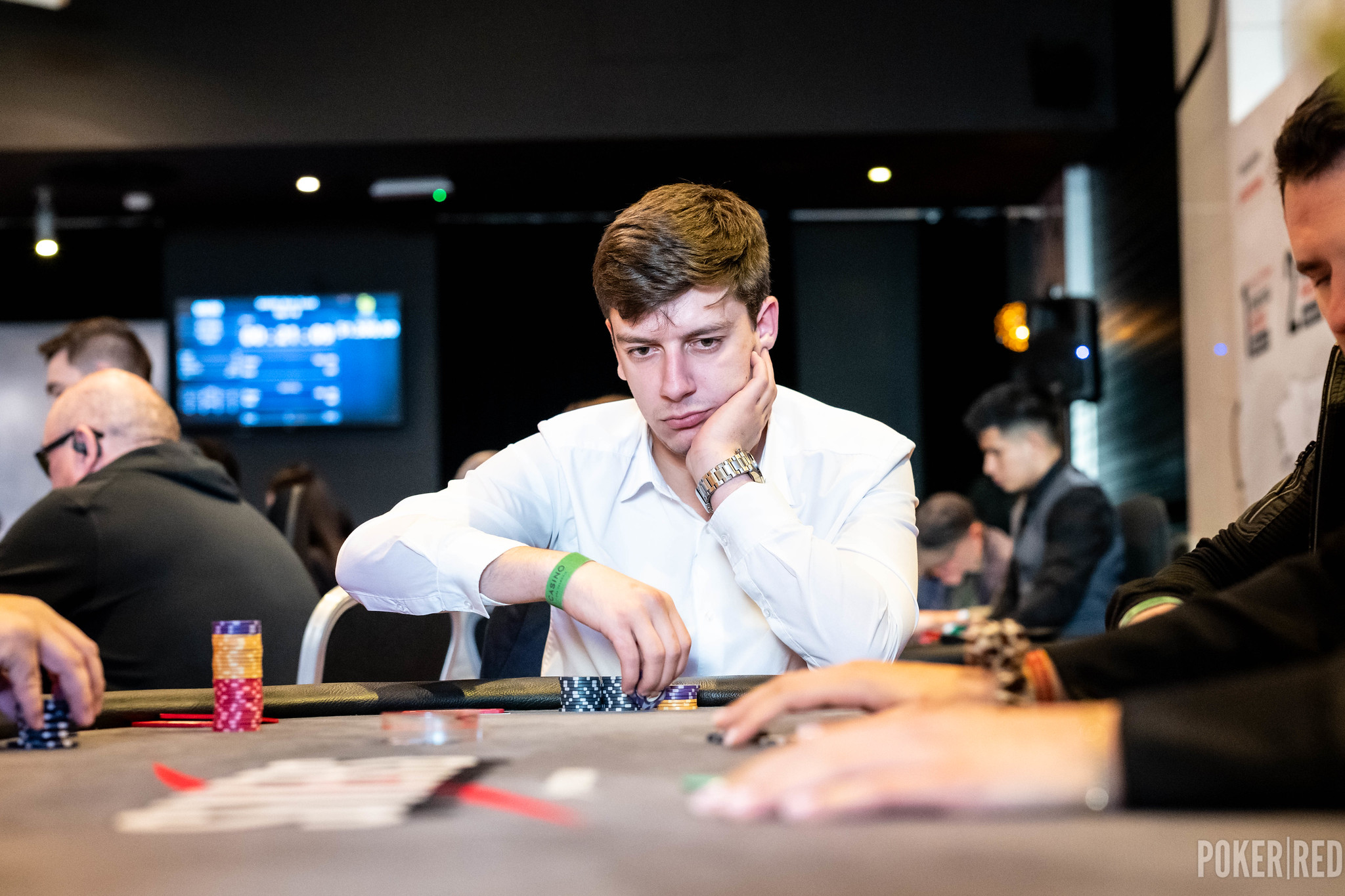 ¡Ha sido cantarse el shuffle-up and deal y ya tenemos una mano curiosa!