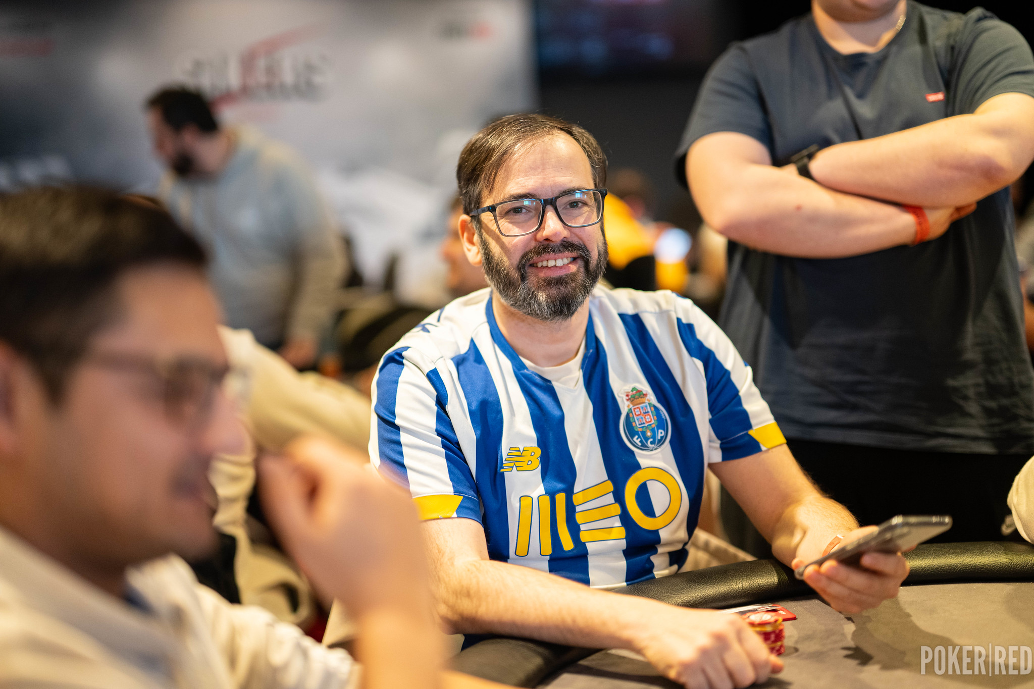 Así que se detiene el evento durante una hora para que los jugadores puedan acudir al cocktail patrocinado por Sportium.