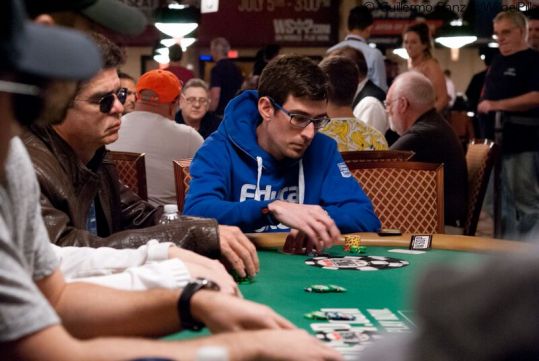 Su debut en un Main Event de las WSOP no estaba siendo precisamente idílico, perdiendo puntos paultatinamente hasta llegar a la peligrosa barrera de los 11.000 puntos, lo que venían a ser menos de 40 ciegas.