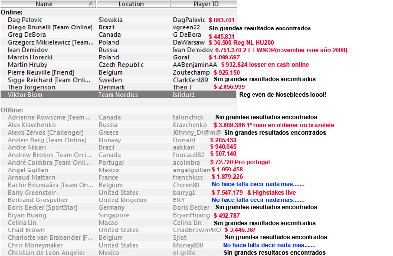 Nahhhhhh segui haciendo la lista xD, sé un buen alumno xD. Todavia faltan pros muy importantes y de renombre alli xD. Para mi lejos lejos los mega pros de stars son Jason Mercier, Elky Grospellier y Nanonoko, son verdaderas maquinas a la par del resto.