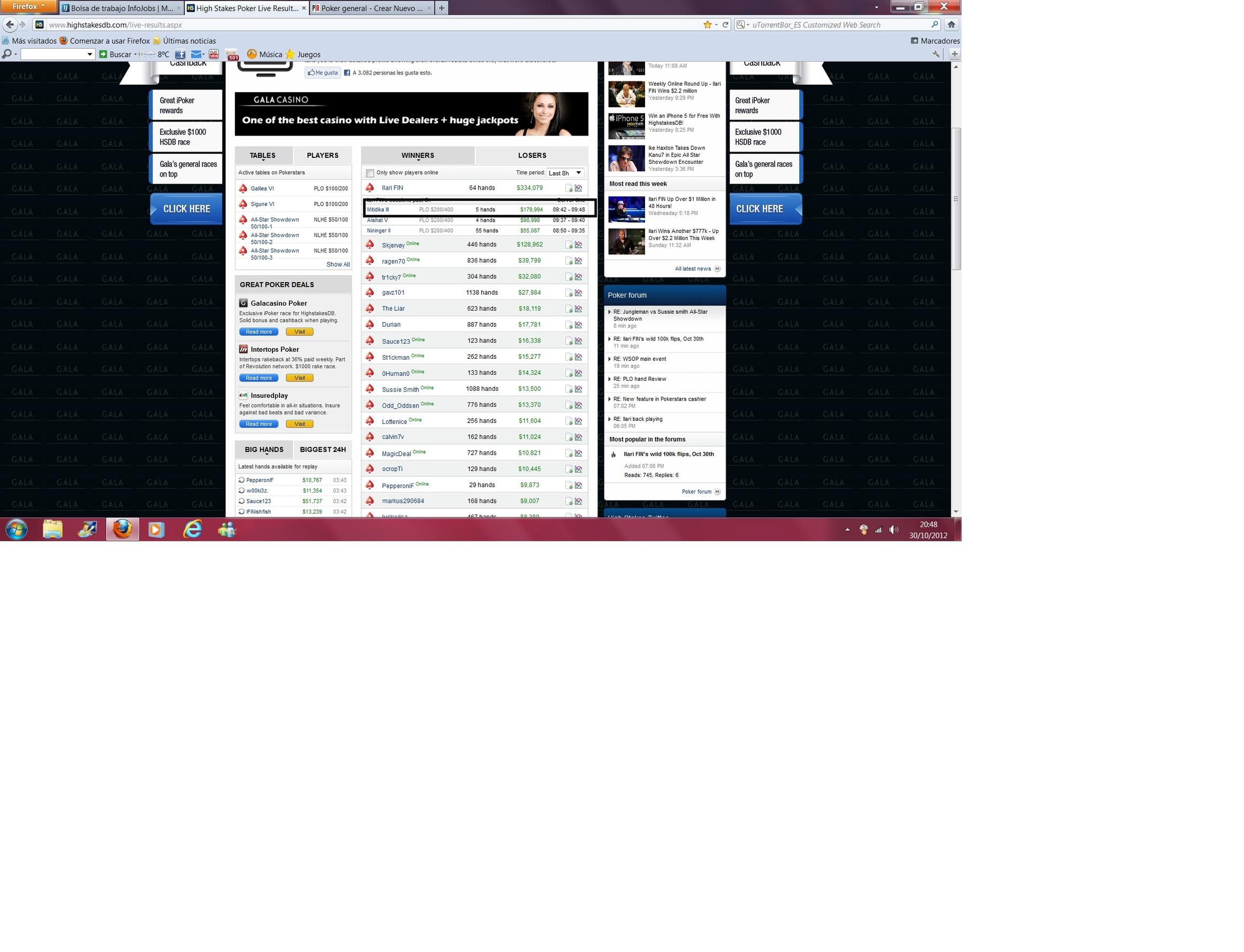30/10/2012 20:51 2 asierh3 Antiguedad 16 años Mensajes 3.554 Re: ¿Las 5 manos más fructiferas de la historia del Poker online? Ups, acabo de ver en el post de Highstakes que eran flips, pensaba que eran manos jugadas normalmente.