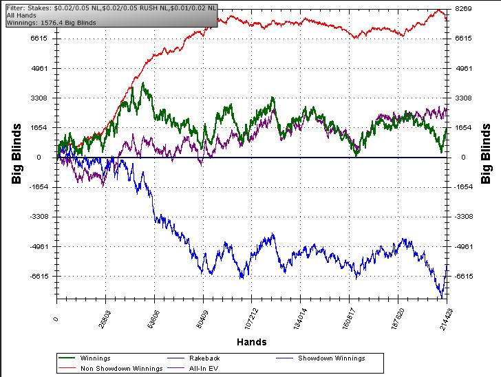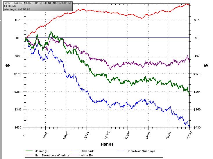 Makis, en NL5 hay que forrarse al SD. Estás tirando manos malas que te pagarían mucha pasta al SD. Aparte de eso, el EV te está crujiendo bien.