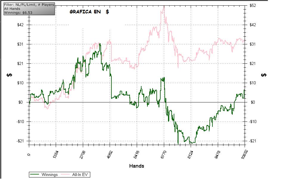 trumaniaMakis, en NL5 hay que forrarse al SD. Estás tirando manos malas que te pagarían mucha pasta al SD. Aparte de eso, el EV te está crujiendo bien.