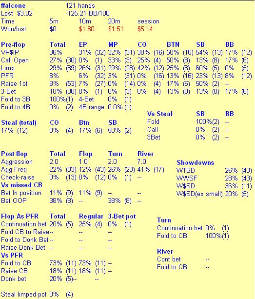 lo mismo digo, cbet y si te paga check/fold... no son muchas manos, pero los stats muestran que ha foldeado el 100% de las cbet (1 solo jejeje).