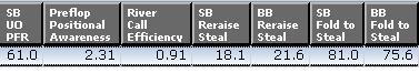 Todo lo q te dije es muy relativo ya q la muestra es ridicula, pero yo bajaria todas mis stats un par de puntos para jugar un poco mas facil posflop.