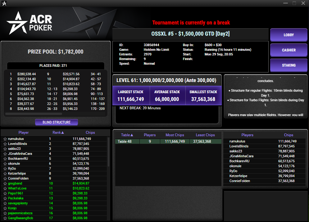 Mario Díaz “LoveIsBlinds” se ha convertido en el nombre propio de los OSS XL en ACR Poker. En menos un mismo día ha conseguido meterse en dos mesas finales de los torneos más importantes del festival, lo que habla muy bien del momento de forma que atraviesa.