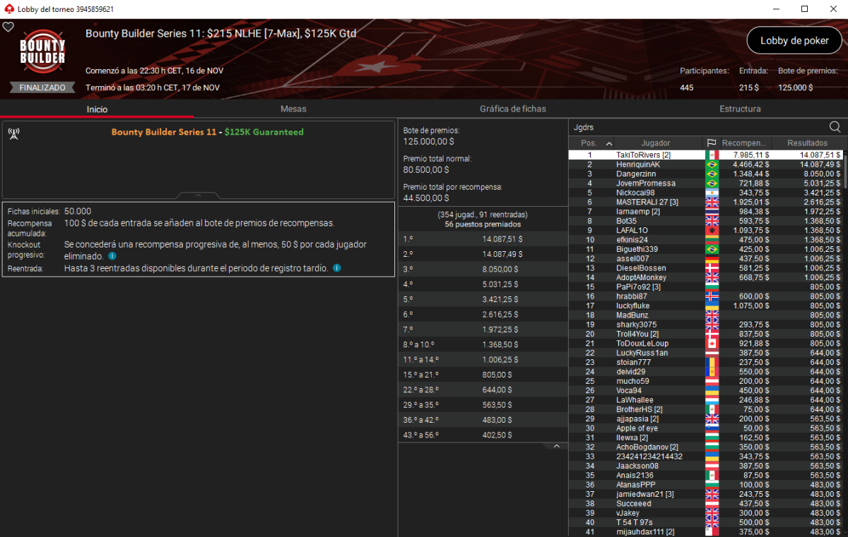 TakitoRivers recibió a las series a lo grande y dando de su propia medicina a los brasileños. Jorge se llevó por delante el Bounty Builder Series 11: $215 NLHE [7-Max], $125K Gtd superando en el 4-handed a los tres cariocas a los que se enfrentaba.