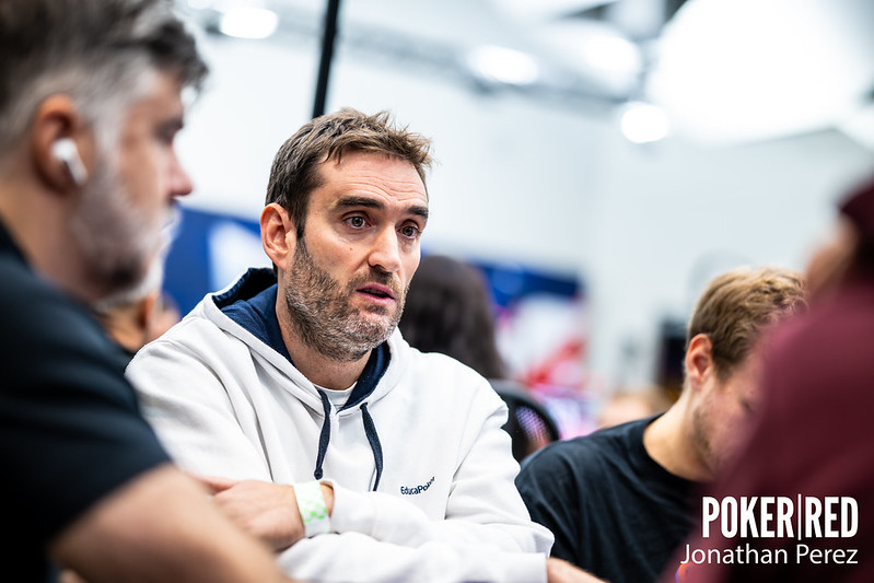 Pronto empezaron bien las cosas, con un Alejandro Ganivet que se incorporaba en el Día 2 y se doblaba ante Dario Sammartino y un Guillermo Gordo que hacía lo propio con Xiaohu Liu. Pero las cosas empezaron a torcerse cuando destrozaron unos ases a Raúl Mestre que acababa de doblarse también para ponerse en la media pagando con cuarta pareja un "overbet salvaje".