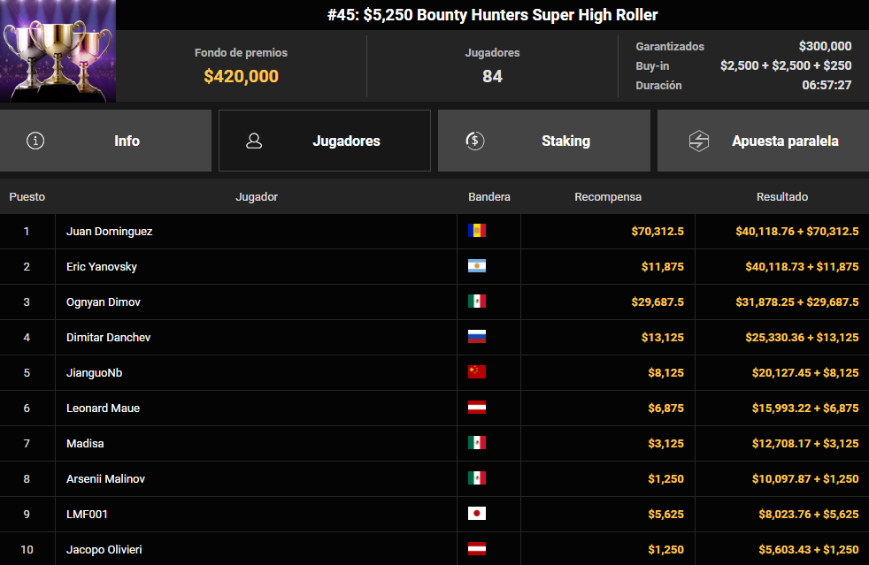 Como remate, el malagueño también decidió que el 5.250 $ Bounty Hunters Super High Roller tenía que dejar su nombre grabado en lo más alto de la tabla.