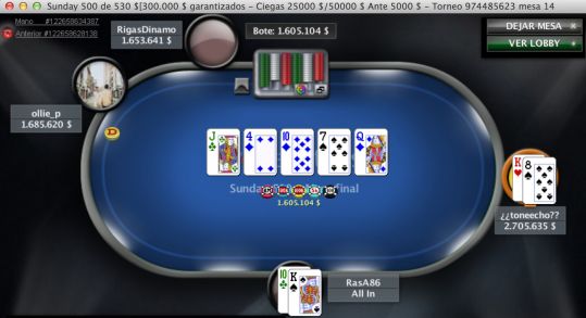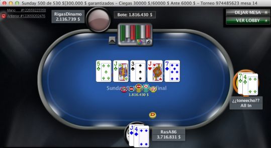 Fueron varios españoles los que no quisieron faltar a esta cita semanal, si bien es cierto que solo Miguel logró pelear por los puestos de importancia. De hecho, ésta significó la primera ocasión en que “¿¿tonecho??” encendía las luces de la mesa final en este importante torneo que reservaba 68.850$ para el ganador.