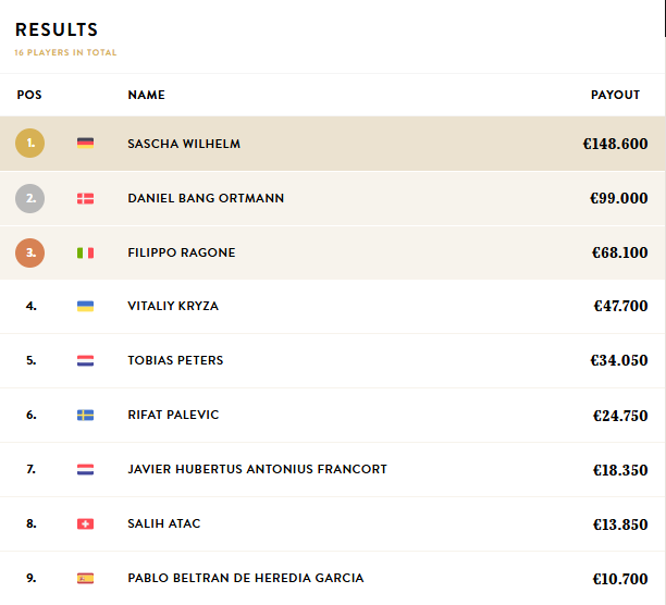 Aquí el alemán Sascha Wilhelm firmó una actuación imponente para hacerse con 148.600 € y sumar el segundo brazalete de su carrera, consolidando su nombre como especialista de la modalidad.
