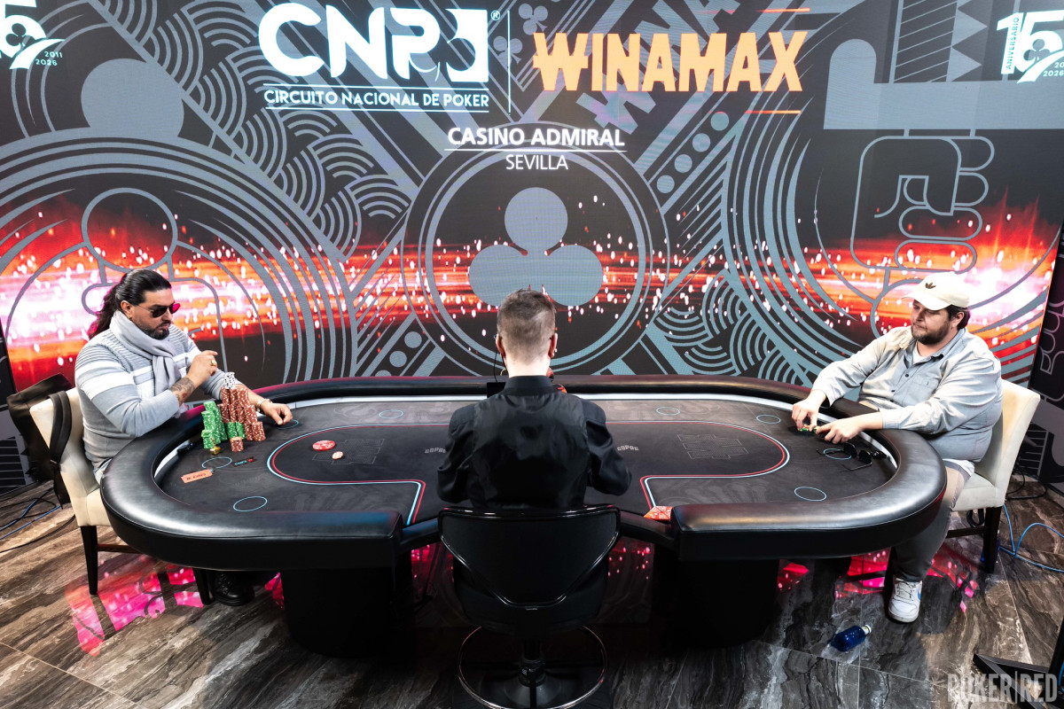 No perdió ninguno de los botes importantes, eligió bien los spots y leyó cada debilidad ajena con una precisión que asustaba. Cuando llegó el heads-up ante el hasta entonces chipleader, Manuel Antonio Delgado Cordero, la diferencia era ya abismal. El duelo duró un par de manos.
