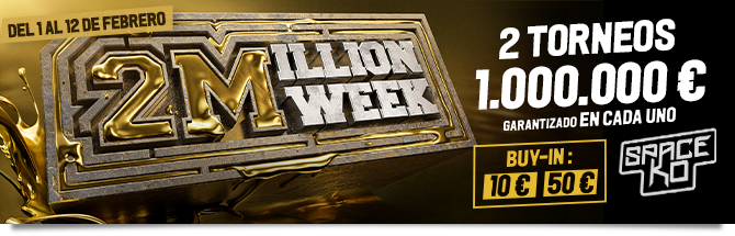 La 2 Million Week entra en su fase decisiva. Los torneos principales, con buy-ins de 10 € y 50 €, mantienen un garantizado de 1.000.000 € en cada uno y ya se ha alcanzado el ecuador del festival.