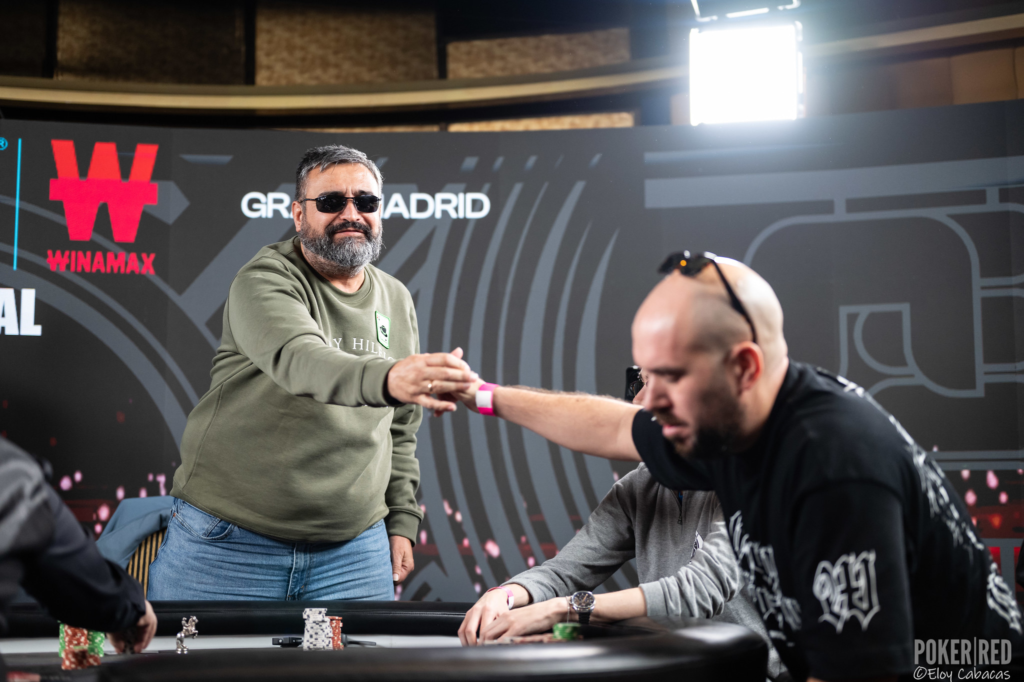 David abría con KsKc y 12bbs y su tocayo en ciega grande metía un taco de fichas, Nus iba con todo y el jerezano pagaba con 9d9c.