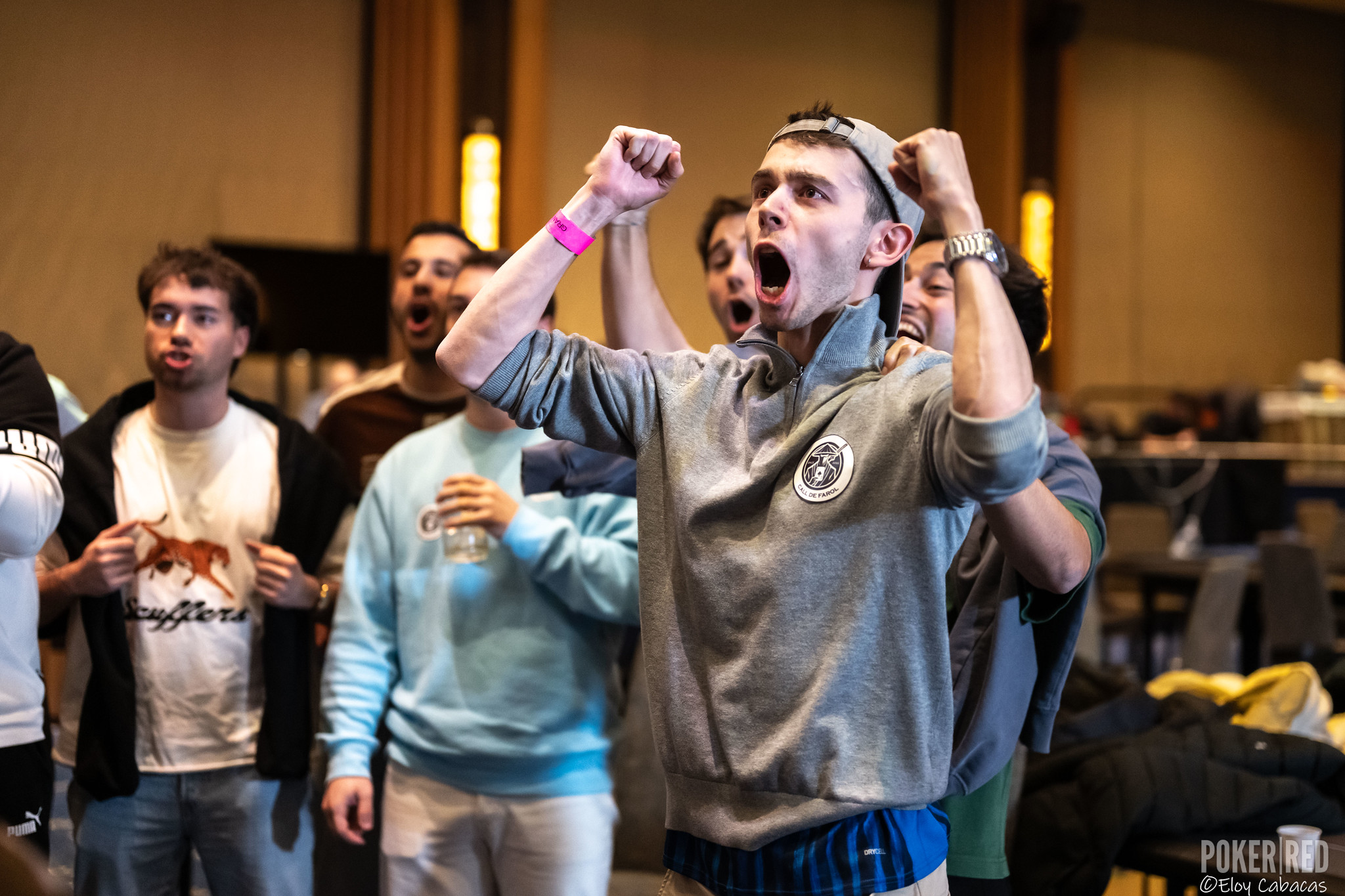 Gui y Marcos se han visto las caras en un all-in preflop AcQh vs 7h7d en el que el madrileño arrinconaba al hispano-luso, quien en caso de no ligar nada, sería el tercer clasificado.