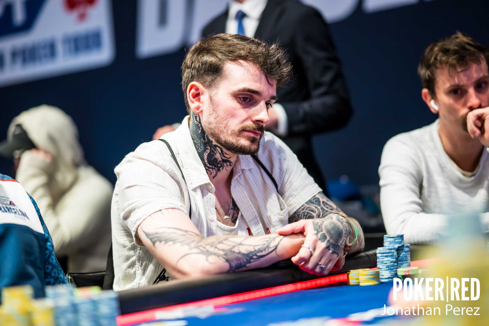 Conseguía el fold de HJ, pero botón, que jugaba 261k, pagaba. AcQc para Sergio, AdKs para su rival y un board 8c7d9d3c3s que no cambiaba nada dejaban al español al borde del abismo.