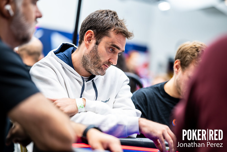 Empezaba el día Raúl Mestre con 40.500 puntos y logró doblarse para ponerse en la media pagando con cuarta pareja un "overbet salvaje".