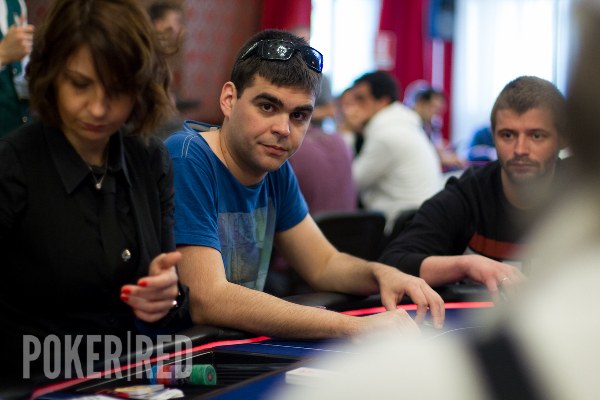 El gallego echaba un 5bet de 14.000 puntos con K9 en posición. En la mesa salía J6338 que le dejaba indefenso frente a la pareja de damas del rival. La única solución viable para él era intentar que se echara atrás faroleando, pero tras pensar unos minutos aceptaba el all-in. De este modo despedimos a David, que se quedará para animar a sus paisanos.