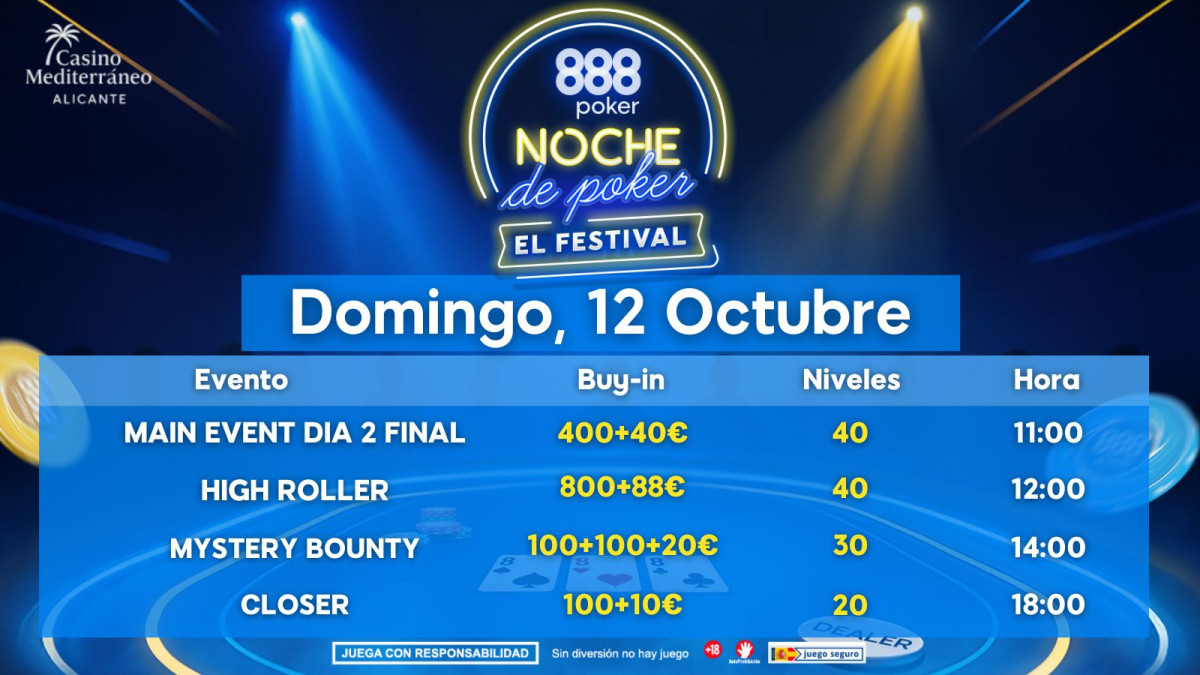 El Mystery Bounty será a las 14h y Noche de Poker El Festival cerrará su primera edición con el Closer a las 18h.