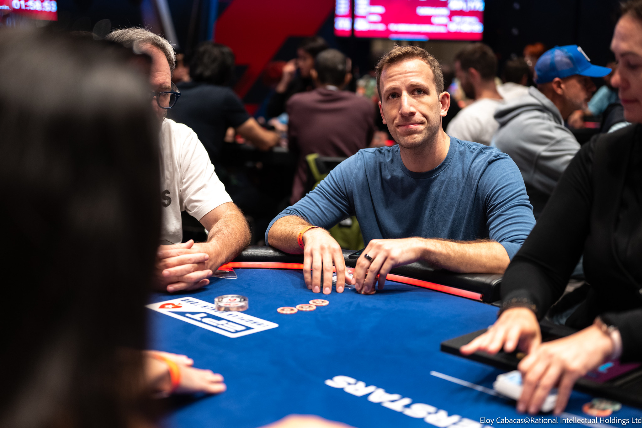 El palentino está muy short, con apenas 7bbs después de robar ciegas y ante y tendrá que sufrir para mantenerse con vida.