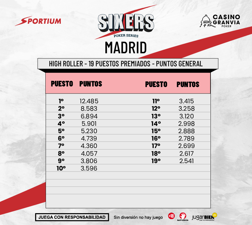 Ahora que los jugadores del High Roller se han ido a cenar antes de jugar la burbuja, aprovechamos para repasar los puntos que se entregarán y como está la clasificación actualmente.