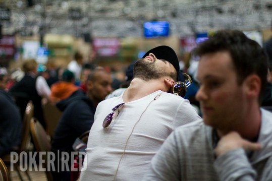 Con el arranque del último nivel de la noche empiezan a verse rostros cansados, y es que el Main Event de las WSOP es una auténtica carrera de fondo. Dos horas son las que quedan de juego hoy. A los que puedan aprovechar el agotamiento del resto les parecerá poco tiempo. A los que estén agotados les resultará eterno.