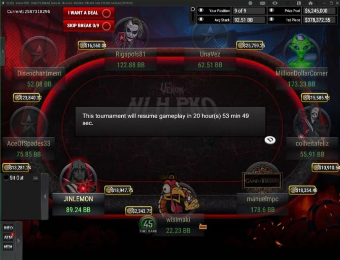 Tras tres intensos días de competición se ha formado la mesa final del Venom PKO, un torneo que partió con un garantizado de 5 millones de dólares, pero que finalmente cerró con más de 6 millones en el prize pool.