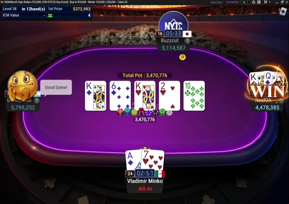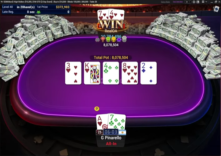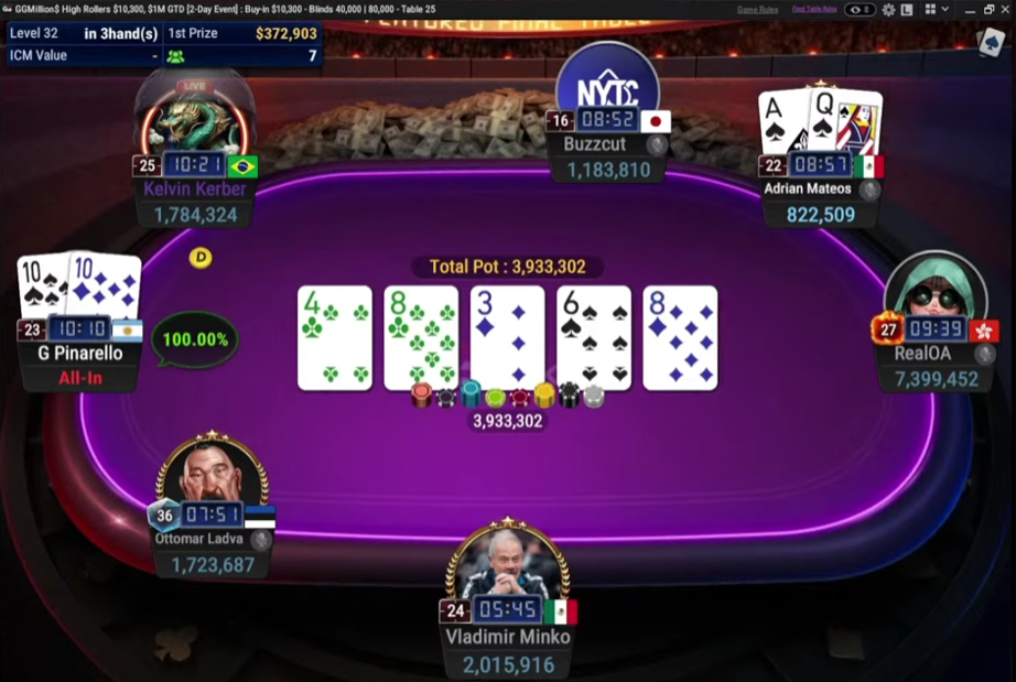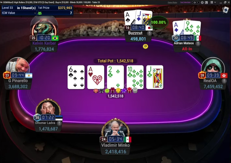 Para Adrián Mateos, fue la 22.ª mesa final en GGMillion$, con cuatro títulos ya en su vitrina. Esta vez, sin embargo, le tocó ser protagonista de la cara amarga de este juego. La parte positiva es que llegarán muchas más como esta y tendrá la opción de cobrarse la revancha.