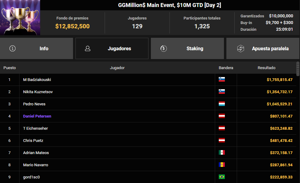 Así, Badziakouski se puso la corona de campeón, se llevó 1.755.815 $ y dejó a Nikita Kuznetsov como runner-up con un premio de 1.354.732 $.
