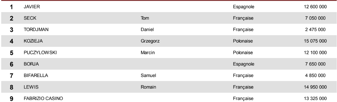 | 1 | Marcin Puczylowski | Polonia | 1.360.000 MAD | 126.072 € |