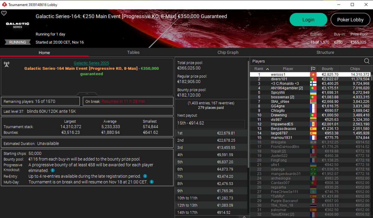🛸 Main Event GS-164 (€250): dos españoles entre los últimos 15