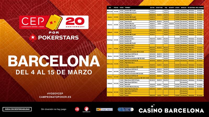 La jornada inaugural marca el inicio de un año especialmente significativo para el circuito, que celebra su 20º aniversario tras cerrar 2025 con cifras récord de participación. Casino Barcelona, sede histórica del campeonato, vuelve a acoger el arranque de la temporada en un escenario que ya forma parte de la identidad del CEP.