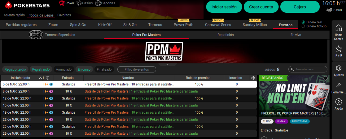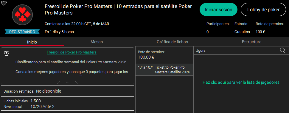 Cada satélite tendra un buy-in de 10 € y podrás clasificarte completamente gratis gracias a los freerolls que se van a disputar los jueves 5, 12, 19 y 26 de marzo.