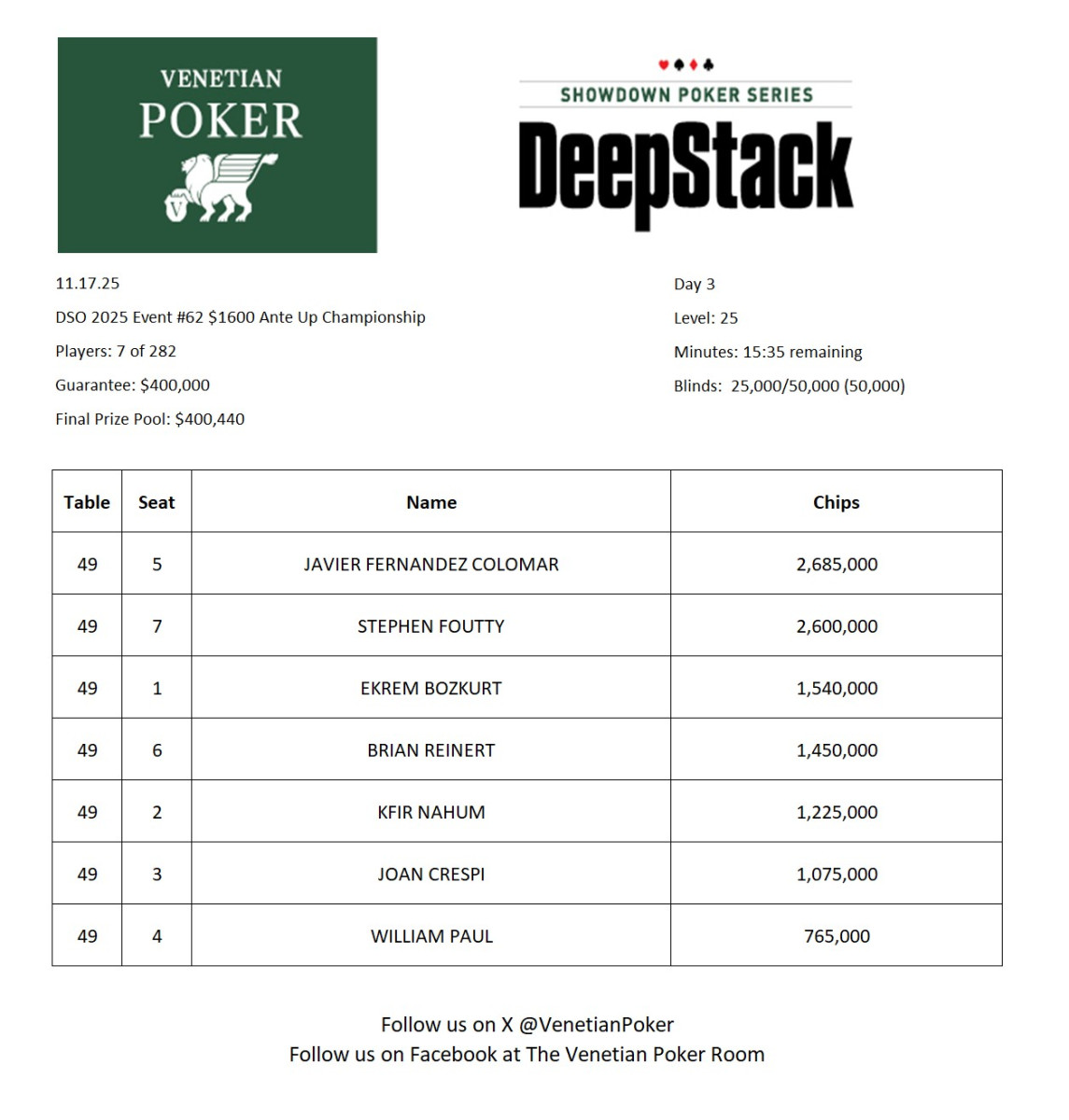 🔗 https://t.co/OEJ4likwk1 pic.twitter.com/FlbHrkqbuz— Venetian Poker Room (@VenetianPoker) November 18, 2025