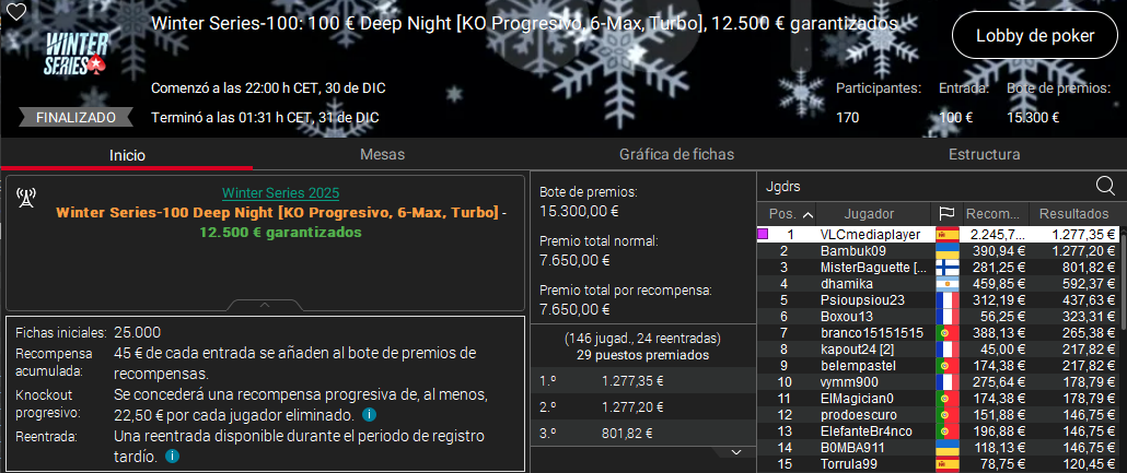 Ayer se disputó la última jornada del año de las Winter Series de PokerStars, una última batalla de 2025 que nos dejó cuatro victorias españolas.
