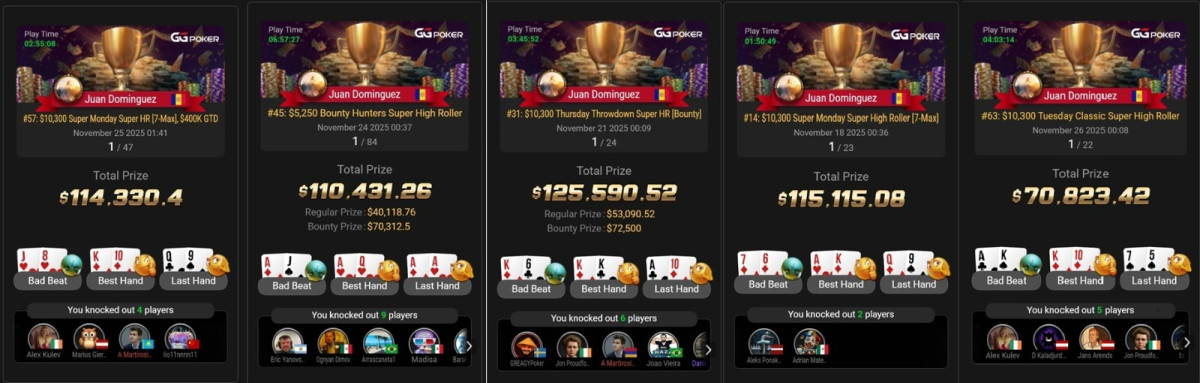 El español ha protagonizado una semana de ensueño en los High Rollers de GGPoker, arrasando en prácticamente todos los torneos que llevaban cinco cifras en la entrada. Lo suyo ha sido una demostración de dominio absoluto.