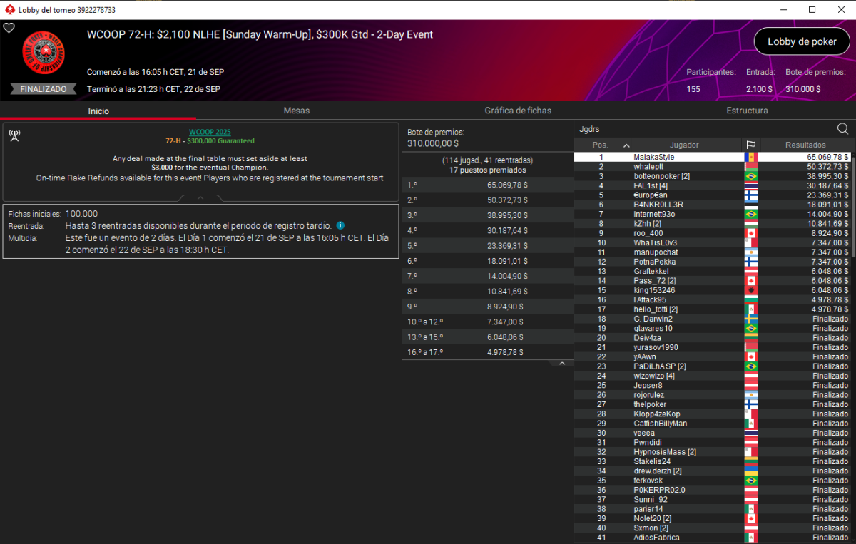 Con este triunfo, Juan suma dos victorias en el WCOOP 2025 y siete a lo largo de su carrera. Sin duda, las WCOOP se le dan muy bien al malagueño.