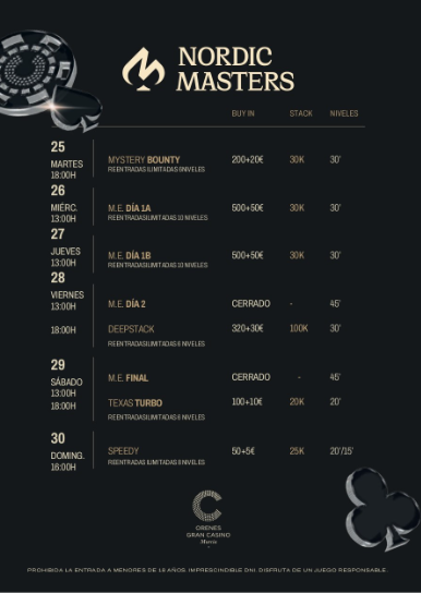 Del 25 al 30 de noviembre, Orenes Gran Casino Murcia se vestirá sus mejores galas para recibir al Nordic Masters, uno de los torneos más emblemáticos del norte de Europa debutará dentro de nuestras fronteras.