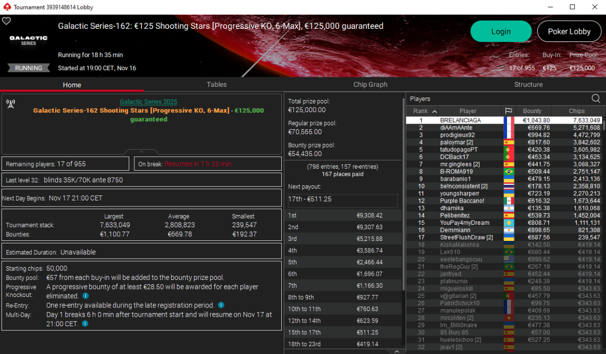 España volvió a dominar la constelación digital de PokerStars con una coordinación casi militar. Y aún queda por resolverse el plato fuerte del domingo: un Shooting Stars de €125 con tres españoles todavía con oxígeno suficiente para aspirar al título.