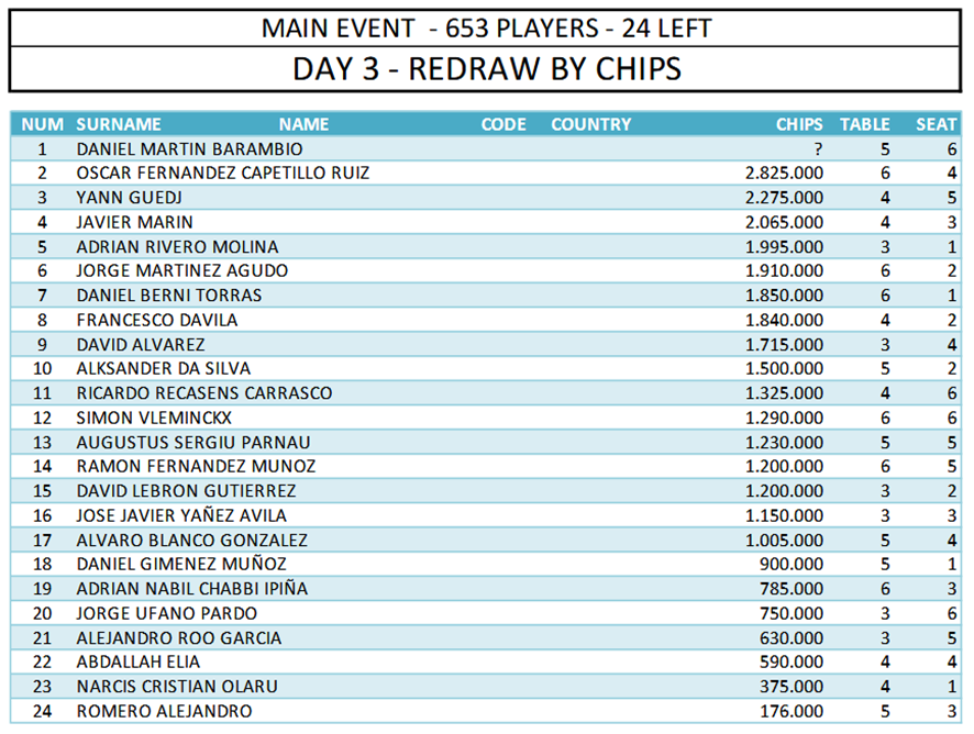 El día comenzaba con la celebración del 1D Turbo, un torneo en el que se registraron 62 jugadores ampliando la cifra total de registros hasta los 611, cifra que curiosamente fue la que lograron el año anterior en el Main Event de la final. Sin embargo, no estaba todo dicho ya que durante os dos primeros niveles de la jornada en el Día 2 se apuntaron 42 jugadores más elevando la cifra hasta 653, una cifra de récord para un circuito que cierra esta semana su tercera temporada en la capital.