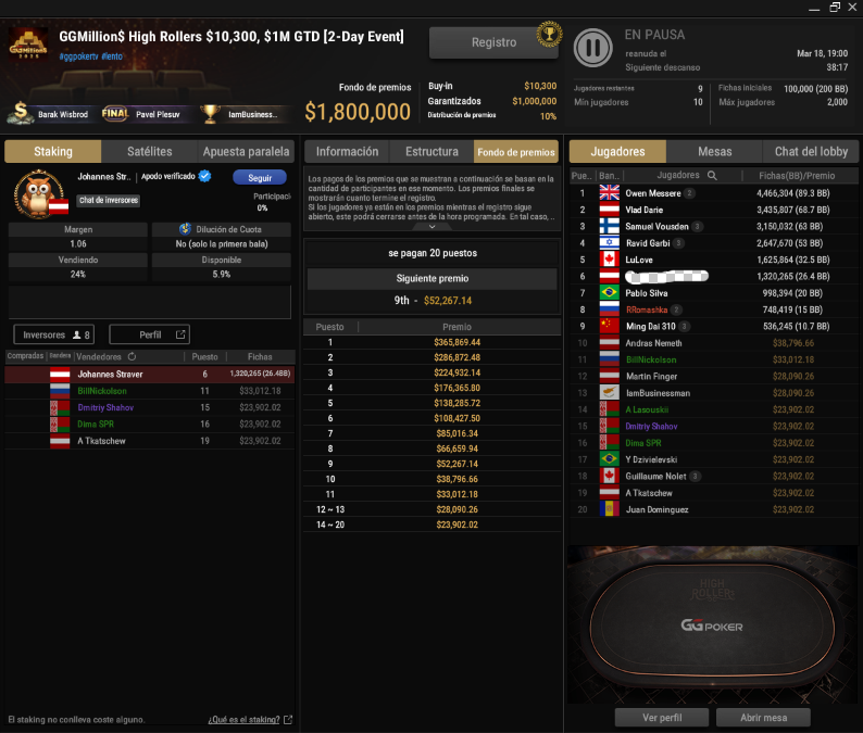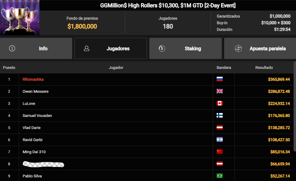 Ayer se decidió una nueva edición de GGMillion$ High Rollers.