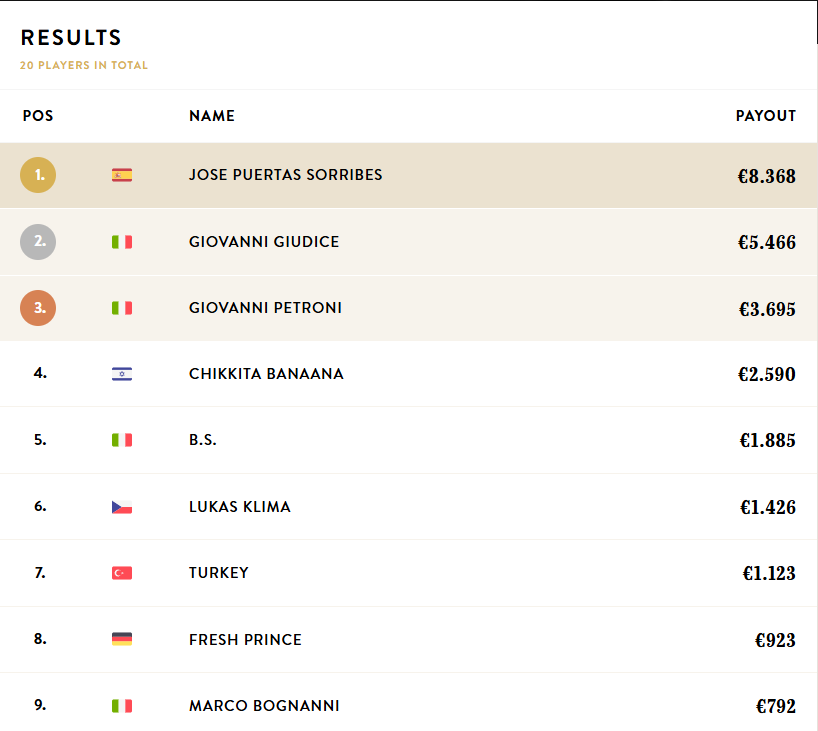 Tras caer de ese torneo, el de Burriana se registró en un turbo de un día y 300 € de inscripción en el que sí pudo saborear la victoria. José se llevó 8.368 € y redondeó un día que le dejó 19.868 € en premios.