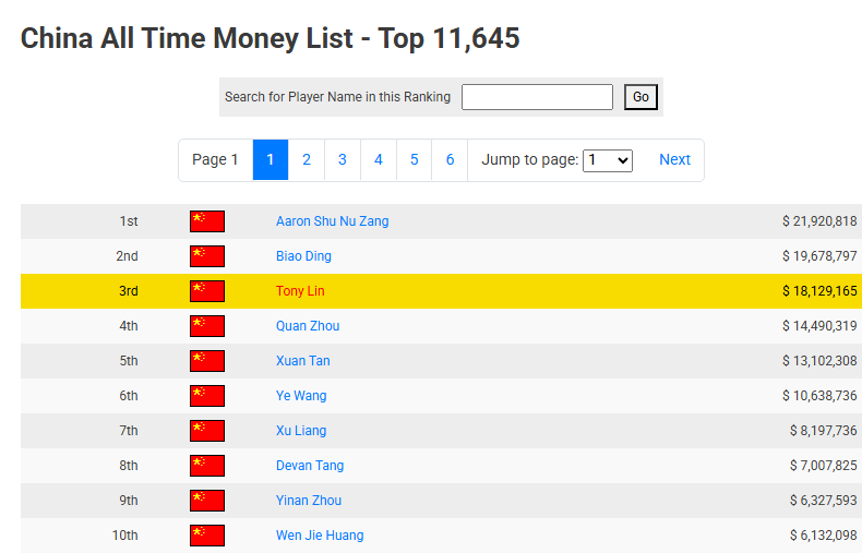 Con este doblete, Lin recorta distancias en la lista histórica de china. Ya acumula un total de 18.144.237 $ en ganancias, lo que le acerca a Biao Ding y mira, con hambre, al liderato que marca Aaron Shu Nu Zhang. Actualmente ocupa la tercera posición, pero tiene a tiro tanto a Biao Ding como a Aaron Shu Nu Zhang. El primero acumula 19.678.797 $, mientras el líder tiene 21.920.818 $, una cifra que, a este paso, no tardará en alcanzar Lin.