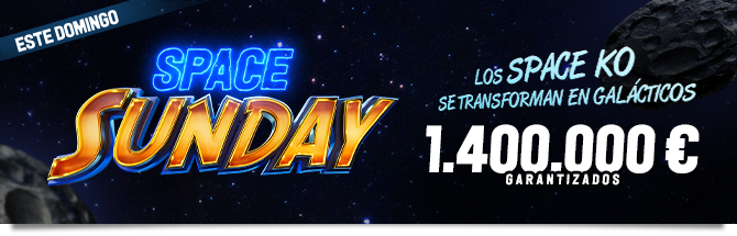 La acción despega con el Space Sunday, un festival online en el que 23 torneos adoptan el formato Space KO, garantizando 1,4 millones de euros en premios. A partir de media tarde, el lobby se convertirá en un despegue interplanetario con KOs a cada vuelta de órbita.